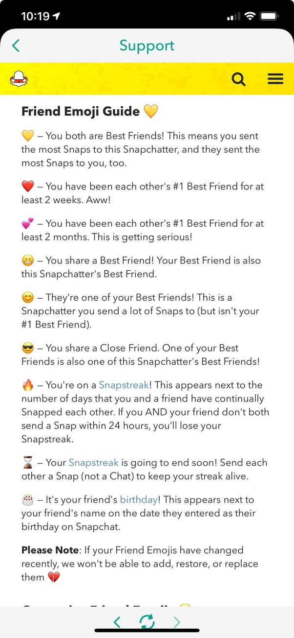 If you see yellow heart snapchat you are 1 best friends 1 bfs with each other. I haven t been able to use it lately and when i logged in my red heart went away from one of my friends and now it s yellow. While some people may be wondering why did my yellow heart turn red others have found even quirkier behaviors with the snapchat emoji like a heart going from yellow to red and then back to yellow after a few minutes it seems there isn t an answer yet though some theorize that it may have to do with when a bestie is actively using snapchat. Click settings on the top right 4.