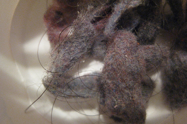 Other things that often get wrapped up with these fibers to form pieces of lint include human and animal hair and skin dust plant fibers and pollen.